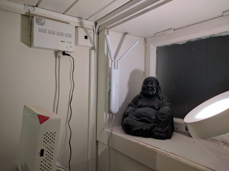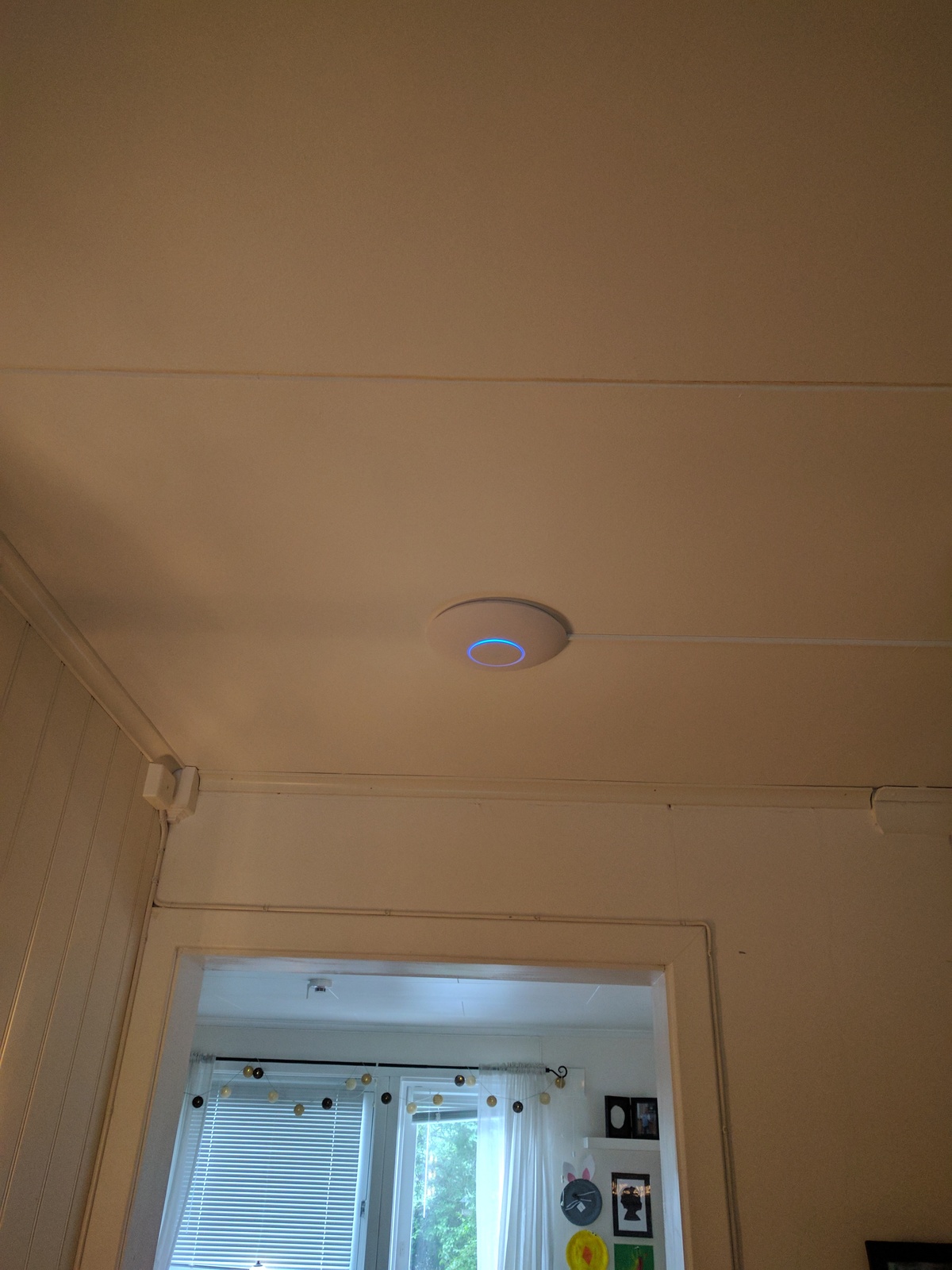 The AP-AC-Mesh is mounted by the window in the home office. I guess I didn’t really need this one, but it does provide a bit better signal on the porch since this is right outside that window. And, most importantly, it means that there is still wireless network available if the other access point drops out. And since the USG, the backbone and the AP-AC-Mesh are all connected to a UPS there would still be WiFi in the case of a black-out.