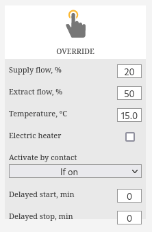As the name implies; the override mode overrides all other modes, even the kitchen and fireplace relay inputs.