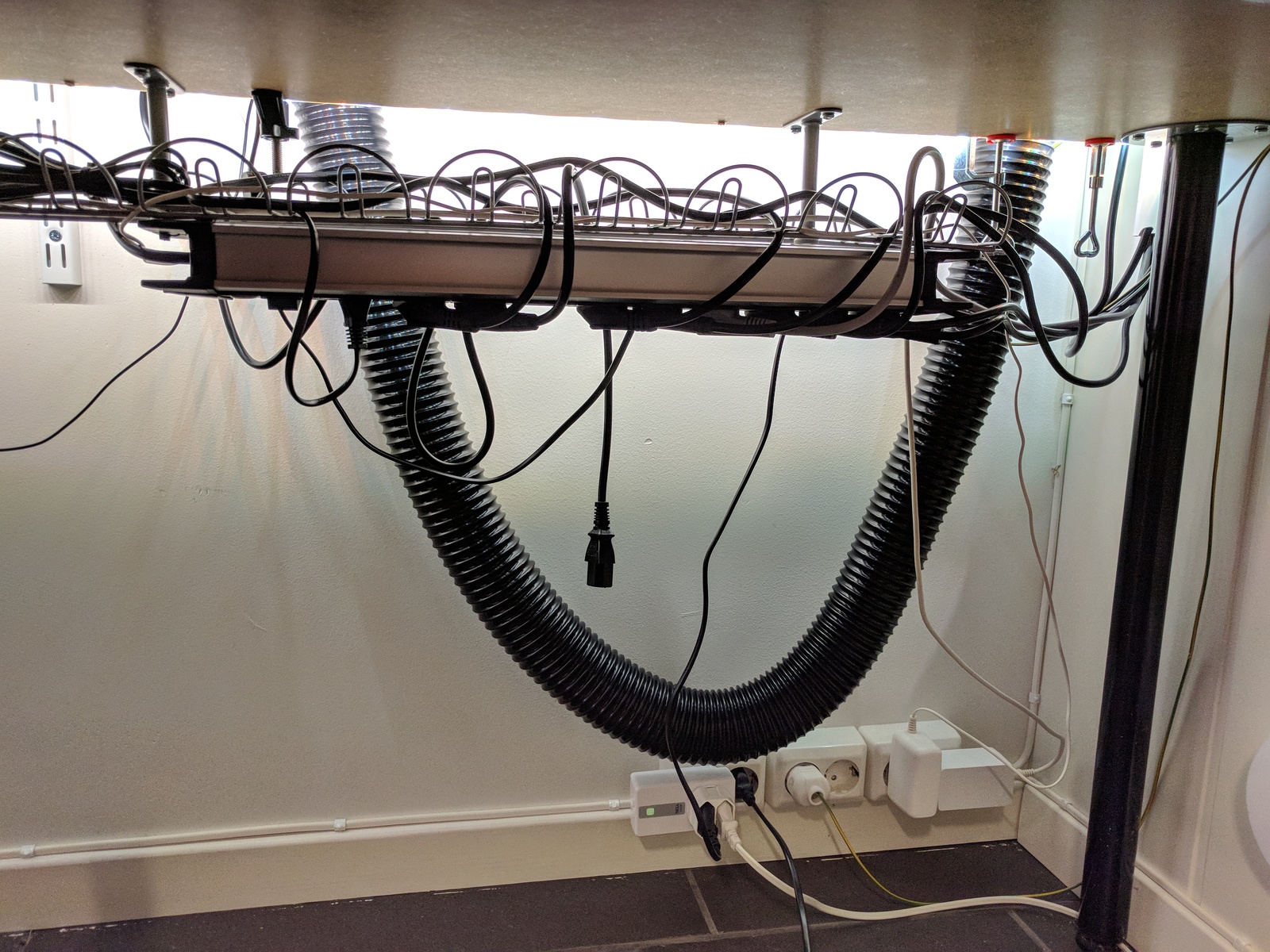 The flexible hose is 2.5 m (8.2 ft), a bit longer than I needed. But I kept it at that length — should I want to move the fume extraction arm in the future.