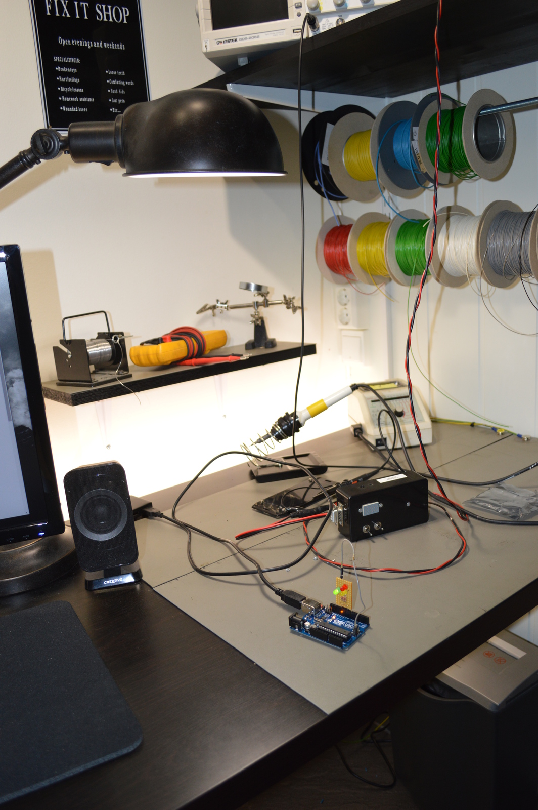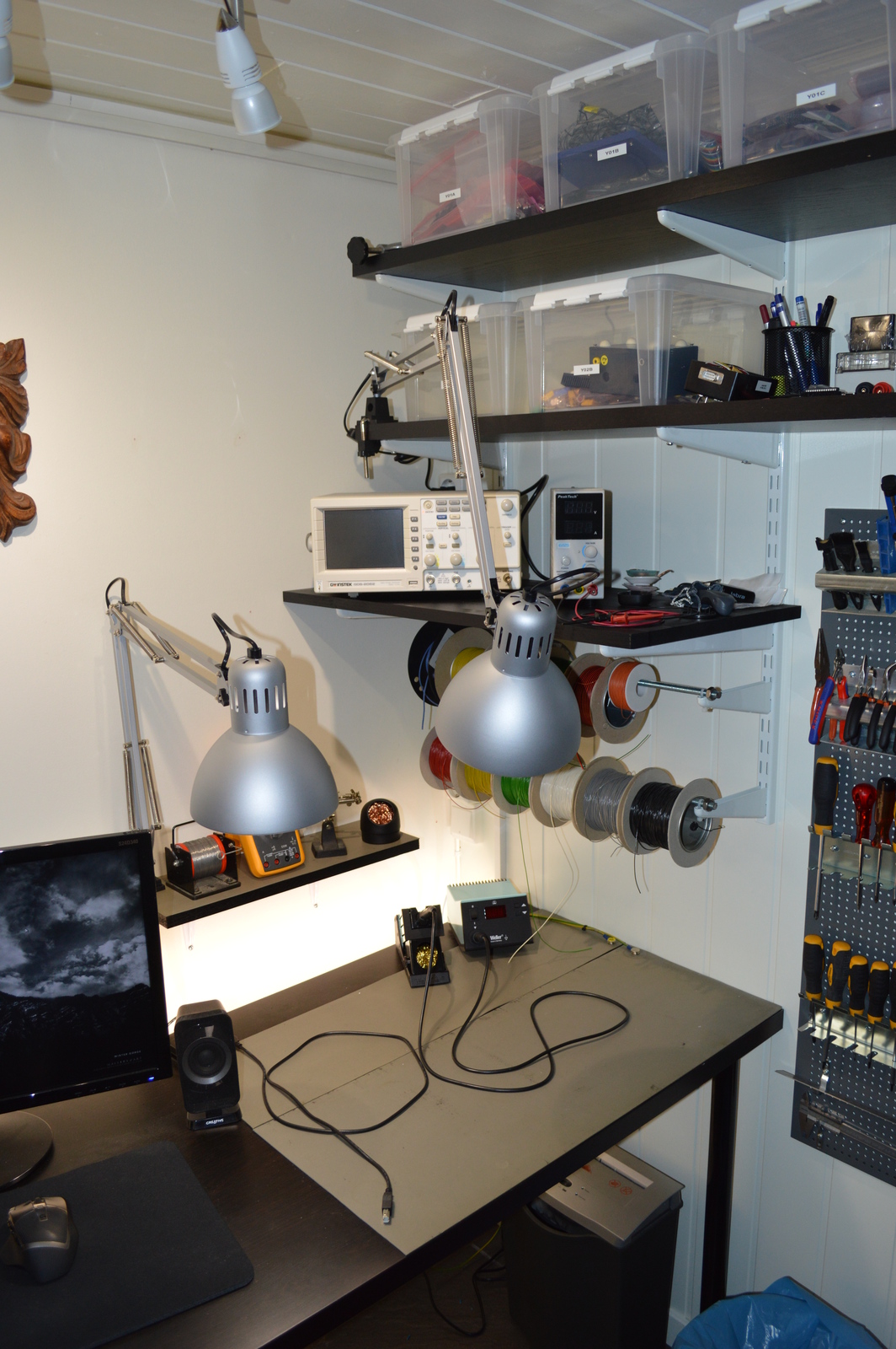 Next, I added a couple of lights; after much searching, I found that the Ikea TERTIAL was both cheap and perfect for the task. I’ve been using a cheap soldering iron for years, but I’ve always wanted one of those Weller soldering stations. Well, now it was finally time to get one! 🙂