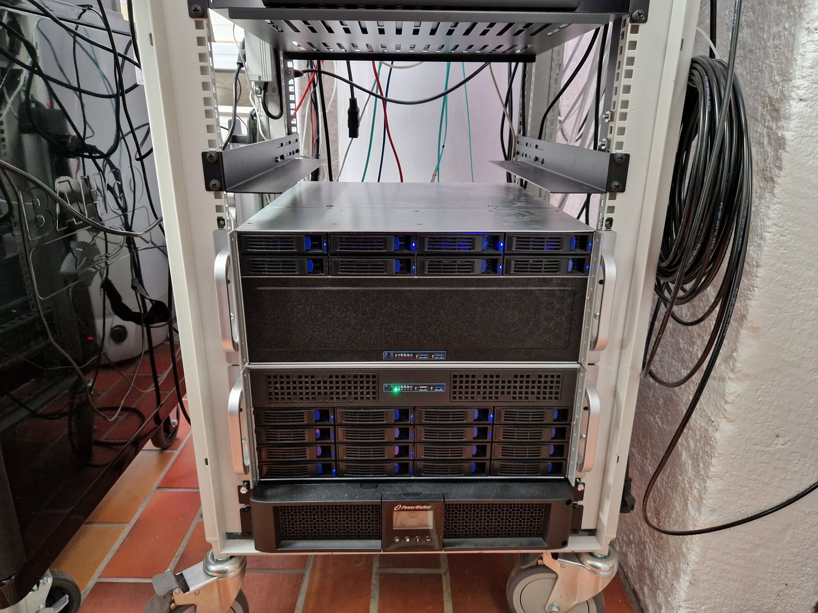 The shelf was mounted above Alpha β to be used for my new Z440 server. That server doesn’t have a rack mountable case, so no rack rails unfortunately.